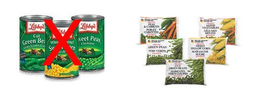 Instead of canned vegetables, buy frozen. They’re bpa free and taste much fresher than a canned variety.